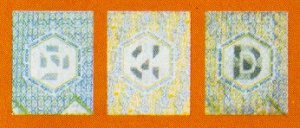 There is a hexagon on the front and back side of the bill. In each of them there are little segments, which will form a "D" when the bill is held against the light. |